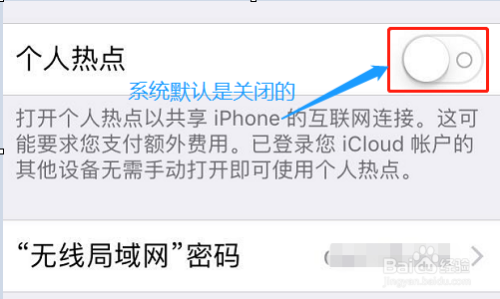 点击今后,在设置页面可以看到“小我热点”,我们就是要经由过程它来实现收集共享的,系统默认是封闭着的;
