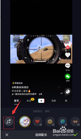 上传完当作,点击改换配乐,如下图所示