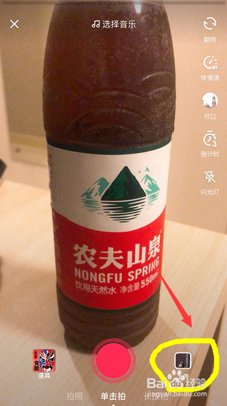 进入拍摄界面,点击上传按钮,如下图所示