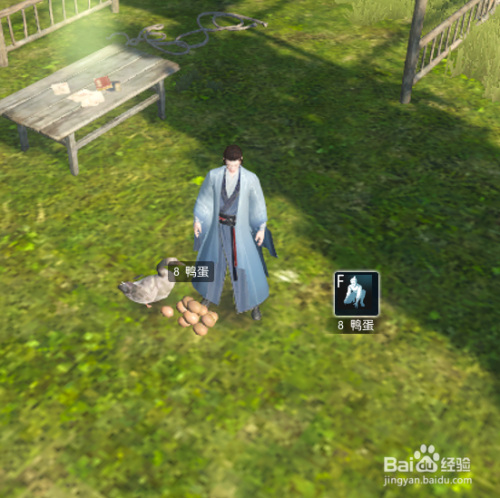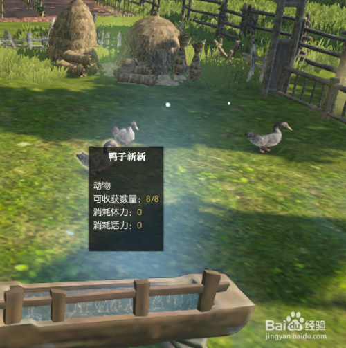 收成鸭子会失落落8个鸭蛋。我们按F键就可以拾取了。