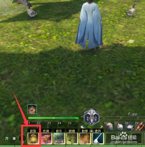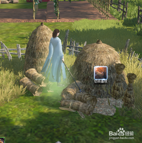 收成的体例:我们移动到畜牧场门口的草堆边上会呈现按F键切换畜牧。我们按一下F键。