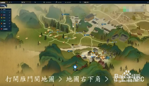 打开地图,在雁门关下找到一个叫百里霜的NPC,系统主动会指导到这个NPC的位置