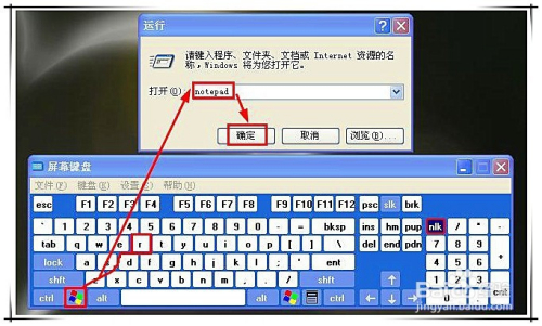 依次点击菜单“起头”——>“法式”——>“附件”——>“记事本”,打开记事本窗口(或直接按下组合键win+R,弹出的运行对话框中输入:notepad 后回车)。