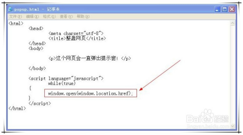 我们只要将前面代码中的 window.open("");点窜当作 window.open(window.location.href),即在新弹出窗口中打开本网页,如许新网页又会挪用js再弹出一个新网页,进而轮回打开新窗口。