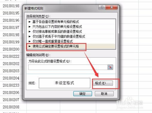 然后在新建格局法则窗口中选择法则类型为利用公式确定要设置格局的单位格,然后点击下方的格局按钮设置一下查找到的分歧数据的格局,最好标识表记标帜一下颜色,选择一种字体颜色然后确定回到新建格局法则窗口。