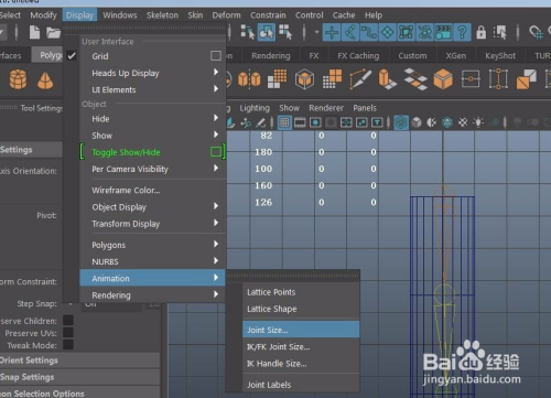 Maya骨骼的建立,以及进行蒙皮,骨骼大小的显示