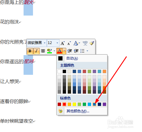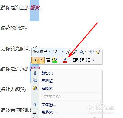 打开word文档,我要选择所有红色字体,将它们改当作蓝色。