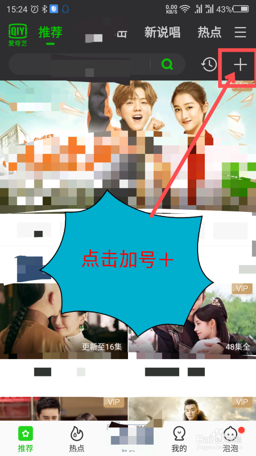 在保举首页界面,右上角三条横线下面有个+加号,点击一下加号图标。