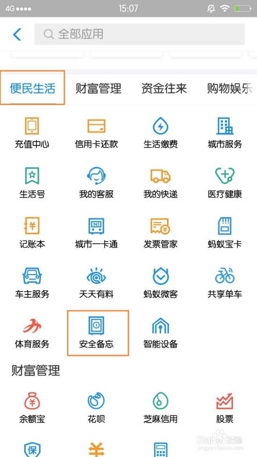 在弹出的信息中,选择【更多】,找到【便平易近糊口】栏面前目今的【平安备忘】,也可以在打开页面中,进行搜刮,都可以,如图。