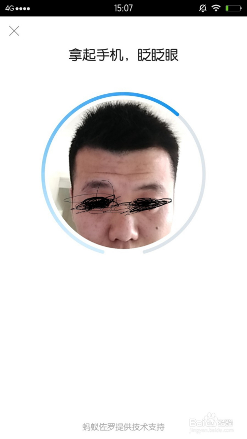 人脸对着界面中的灰圆,颠末眨眼,便可很快的经由过程并浮现下一页面,如图。