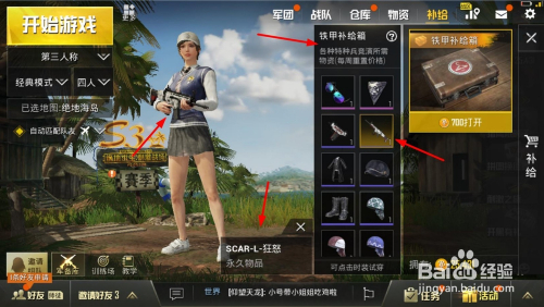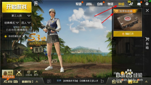 在登录我们绝地求生刺激战场账号之后,小伙伴们可以点击菜单栏里的补给按钮,弹出铁甲补给箱。