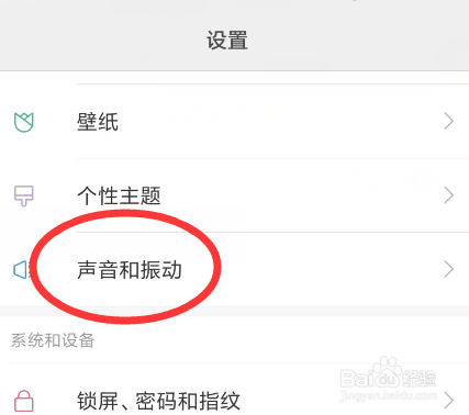 找到之后打开我们手机的设置,找到声音和震动选项。