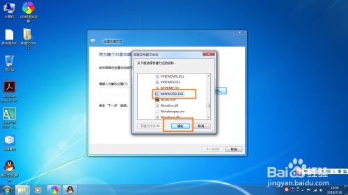 找到要建立快捷体例的应用法式,点击确定,如图。