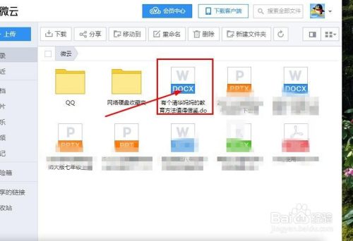 点击起头上传,上传当作功后,就能把文件保留在微云的文件夹里,若是需要的话,点击下载就可以了。