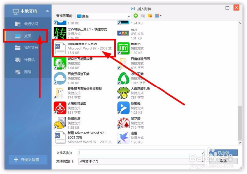 一、在wps文字中直接添加一个文件:我们筹办一个文件,以某个“年关总结”文件为例,这里我放在了桌面上,这个就是我们要添加的阿谁文件了。