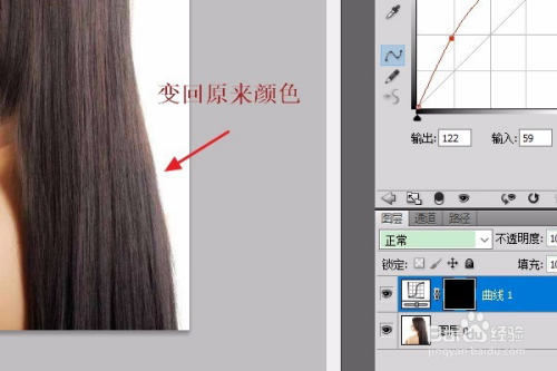 这显然不是我们期望的成果,返回到图层处,此时我们会发现适才的图层上面增添了“曲线1”图层,我们点击右侧的白色部门,然后按住Ctrl+I将其变为黑色(前景色和布景色是白色和黑色的前提下)