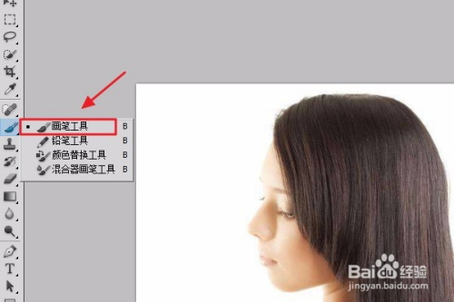 此时适才的使命就全数回到了本来的颜色,不外没关系,我们点击左侧东西里的“画笔东西”,然后对着头发部门进行涂抹,然后就会发现头发酿成了我们想要的红色,而其他部门颜色仍是之前的;