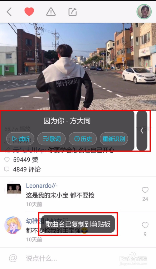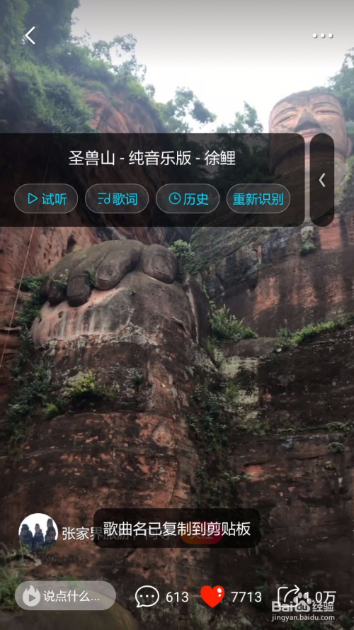 最后识此外歌曲名显示出来了,并复制到剪贴板。可以在浏览器或音乐软件直接粘贴搜刮试听了。