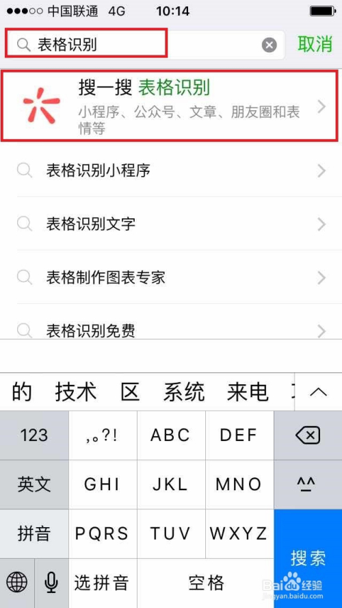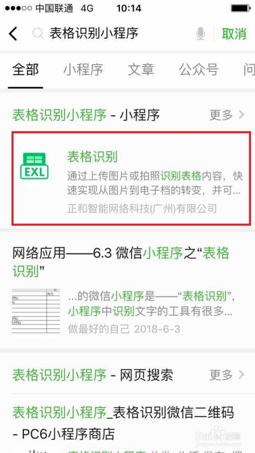 2、搜索框输入“表格识别”确认后会呈现以下成果,选择第一个,如图二