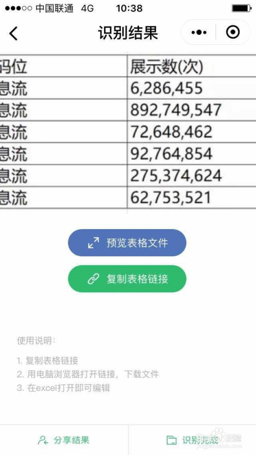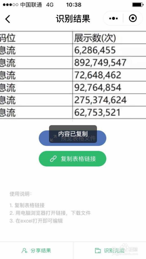 识别当作功后,可以选择在手机上预览或者复制链接到电脑长进行编纂,如下图:
