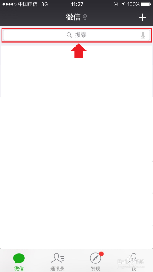 打开微信,在“微信”界面中,点击上方的搜索框