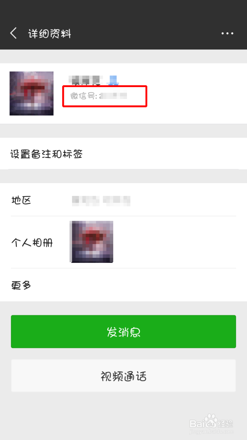 接着就会来到该群友的具体资料页面,这时辰我们也可以看到图像右侧,微信名下方的微旌旗灯号了。