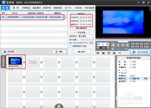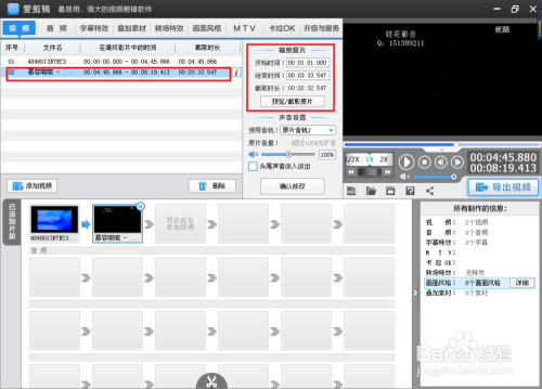 如图,已经将视频添加到了软件中,上面显示视频的一些信息。