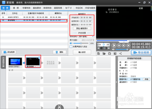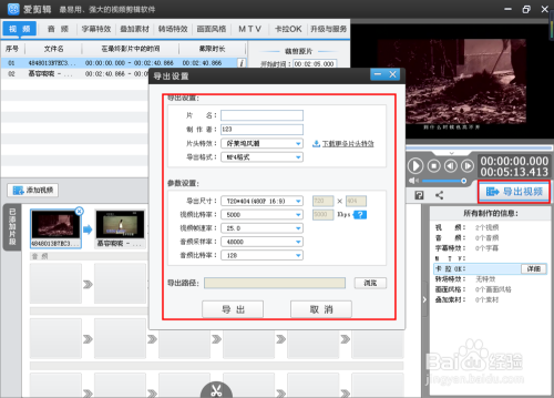 此刻我们已经从适才的两个视频中剪下来一部门。然后导出。