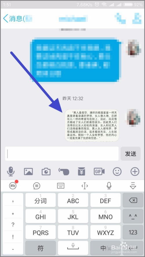 打开手机QQ的聊天页面,我们找到想要处置的图片。