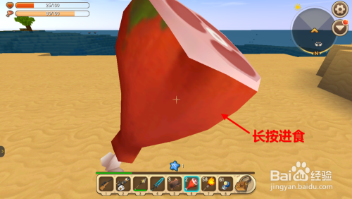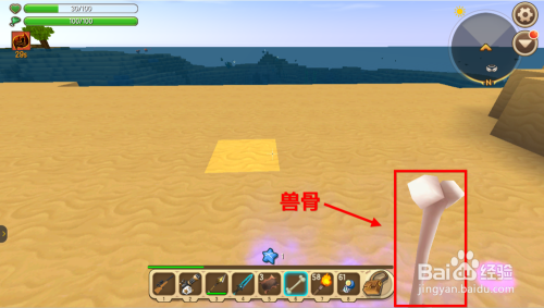 步调2获得的奇异肘子可以吃,拿着肘子长按鼠标右键进食,吃完获得兽骨。