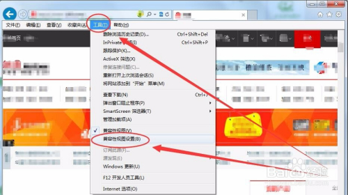 单击菜单的东西选项,选择兼容性视图设置选项。