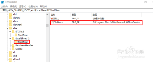 复制这个路径,找到计较机\HKEY_CLASSES_ROOT\.xlsx\ET.Xlsx.6\ShellNew 点窜路径为方才复制的路径