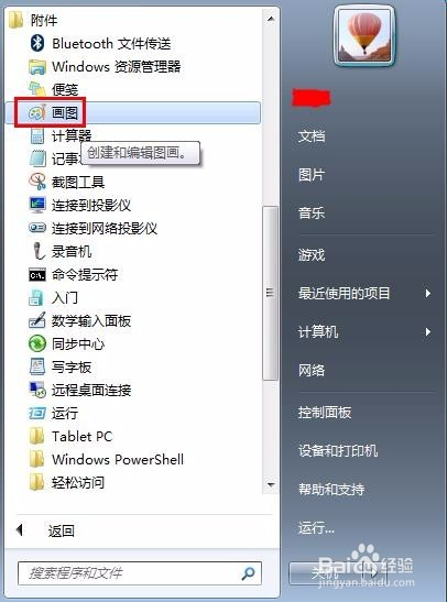 第一步:在电脑“附件”中找到自带的绘图软件。