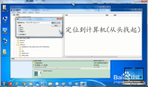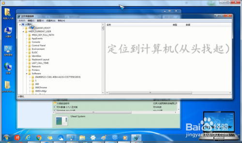 打开注册表之后,先点击计较机(为的是从头找起,因为注册表会有记忆功能)