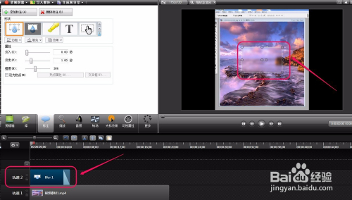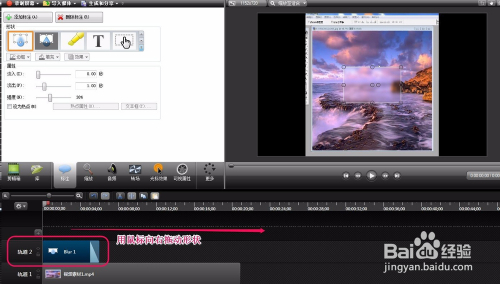 这时,轨道上呈现了“Blur 1”的外形,视频预览区画面上也呈现了一块矩形恍惚区域,这就是磨砂结果外形。