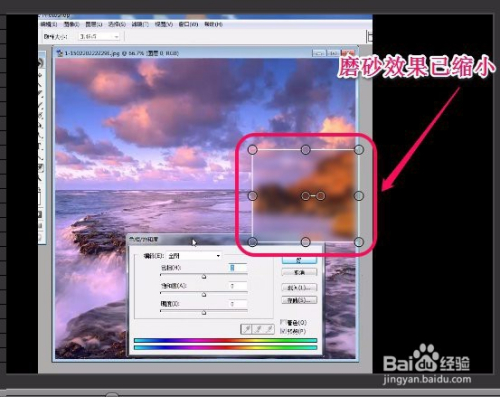用鼠标拖动红色框区域,把磨砂结果外形拖动到需要的画面位置。