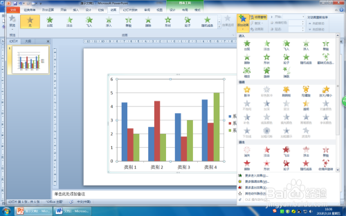 第二步:选中图表,单击“动画”选项卡,在“高级动画”组中单击“添加动画”按钮。