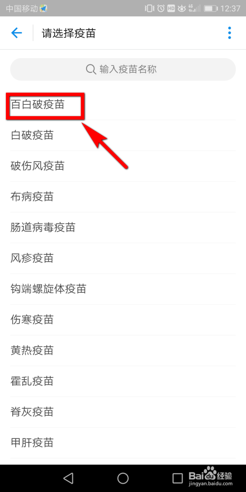 点击疫苗名称今后,弹出一个列表,在列表中选摘要查询的疫苗名称。