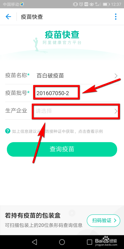 选择好出产厂家后,所有的信息就填写完当作了,点击该页面中的【查询疫苗】按钮。