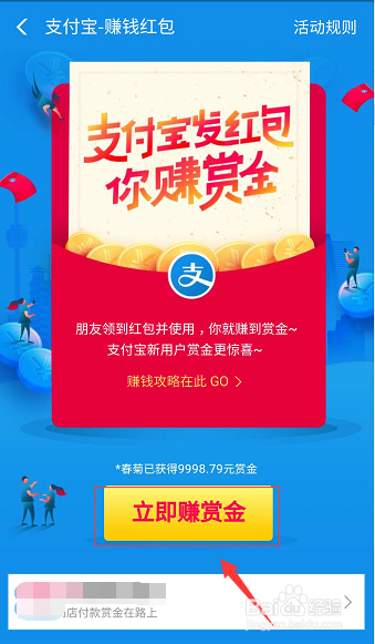 进入赚红包界面,点击当即赚赏金按钮,如下图所示