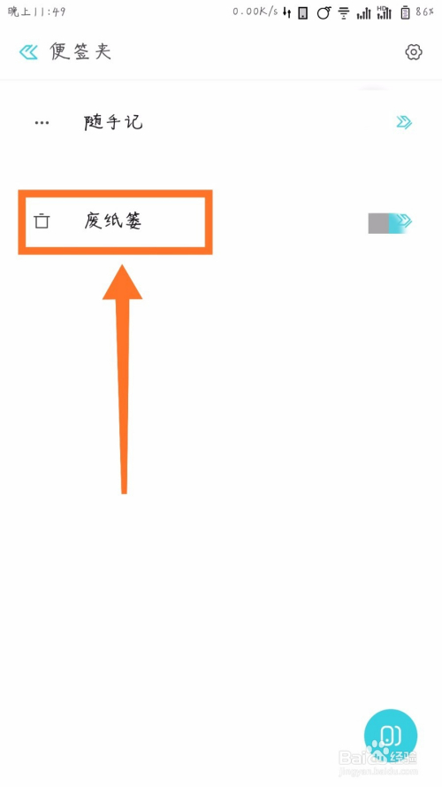 进入废纸篓界面,我们可以看到这里会主动保留删除的便签30天,找到你想恢复的内容并点击。