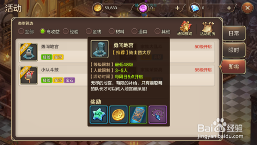我们可以去做魔力宝物推出的限时活动,在活动面板找到“勇闯迷宫 ”这个天天限时活动,做这个活动也有几率获得果梨,不外这个活动需要48级才开放 。