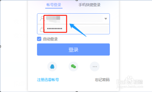 确定了版本今后,我们就要利用迅雷账号进行登录了,点击软件左上角的“点击登录”选项,然后输入账号和密码,如图所示...