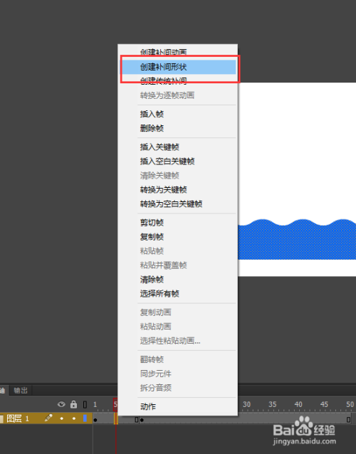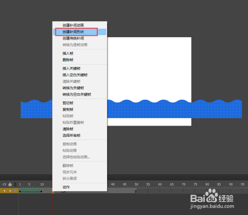 在时候轴第20帧的位置按F6插入一个关头帧,框选中整个所有矩形,再次执行点窜——变形——程度翻转号令;然后依然在第10帧与第20帧之间建立一个补间外形动画。
