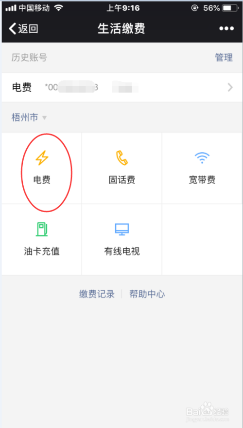 点击打开糊口缴费选项后,发现里面有——(电费)选项,点击之打开。
