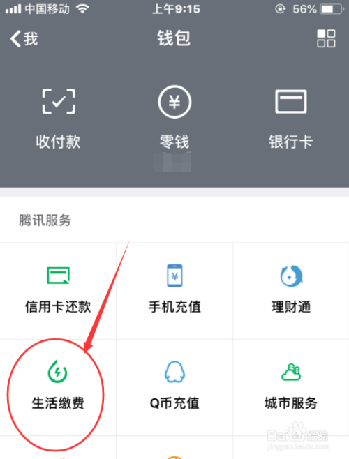 点击钱包选项后,在钱包选项界面选择点击里面的——糊口缴费。