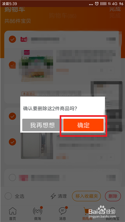 接下来就可以选择我们要断根的购物车物品了,选择我们不需要的,选择好后点击右下角的【删除】。