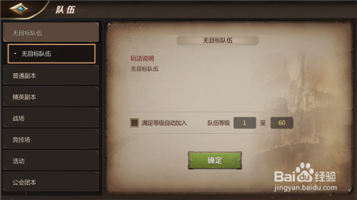 点击之后,我们在右侧可以输入步队的方针,加盟的队员的品级限制。
