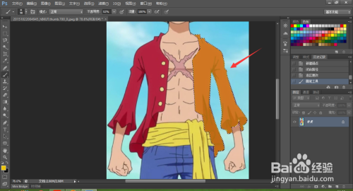好比我们要将下面的图像的衣服扣出来,然后改变衣服的颜色,因为衣服有良多曲线的处所,用套索东西扣的话可能会扣欠好,那么我们可以用钢笔东西完美的扣出来,这里衣服我们分摆布两个选区来进行抠图。