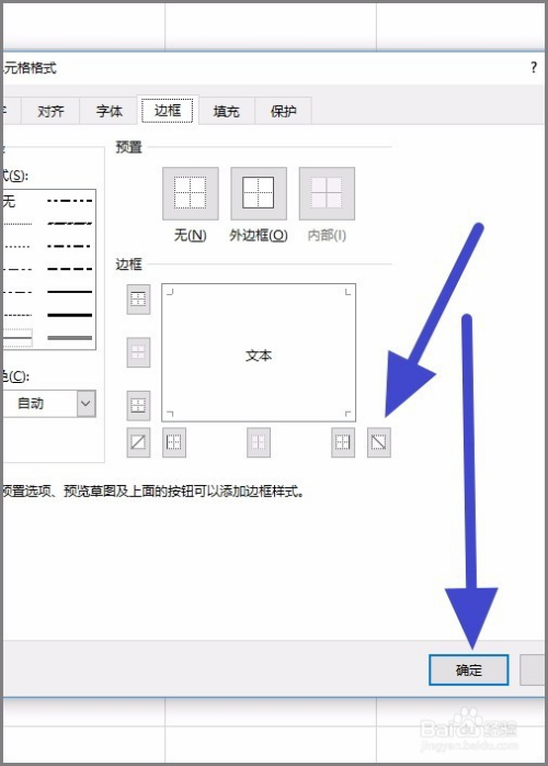 进入到设置边框页面之后,我们找到右下角的斜线,点击选中,然后点击下方确定。